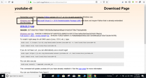 ডাউলোড এ ক্লিক করার পর নিচের পেজ এর মত একটা পেজ আসবে । সেখানে থেকে Windows exe এ ক্লিক করে youtube dl টি ডাউনলোড করে নিন । আপনার পিসি তে যদি Microsoft Visual c++ Install করা না থাকে তাহলে পাশের লিঙ্ক এ ক্লিক কর তা ডাউনলোড করে ইনস্টল করে নিন।